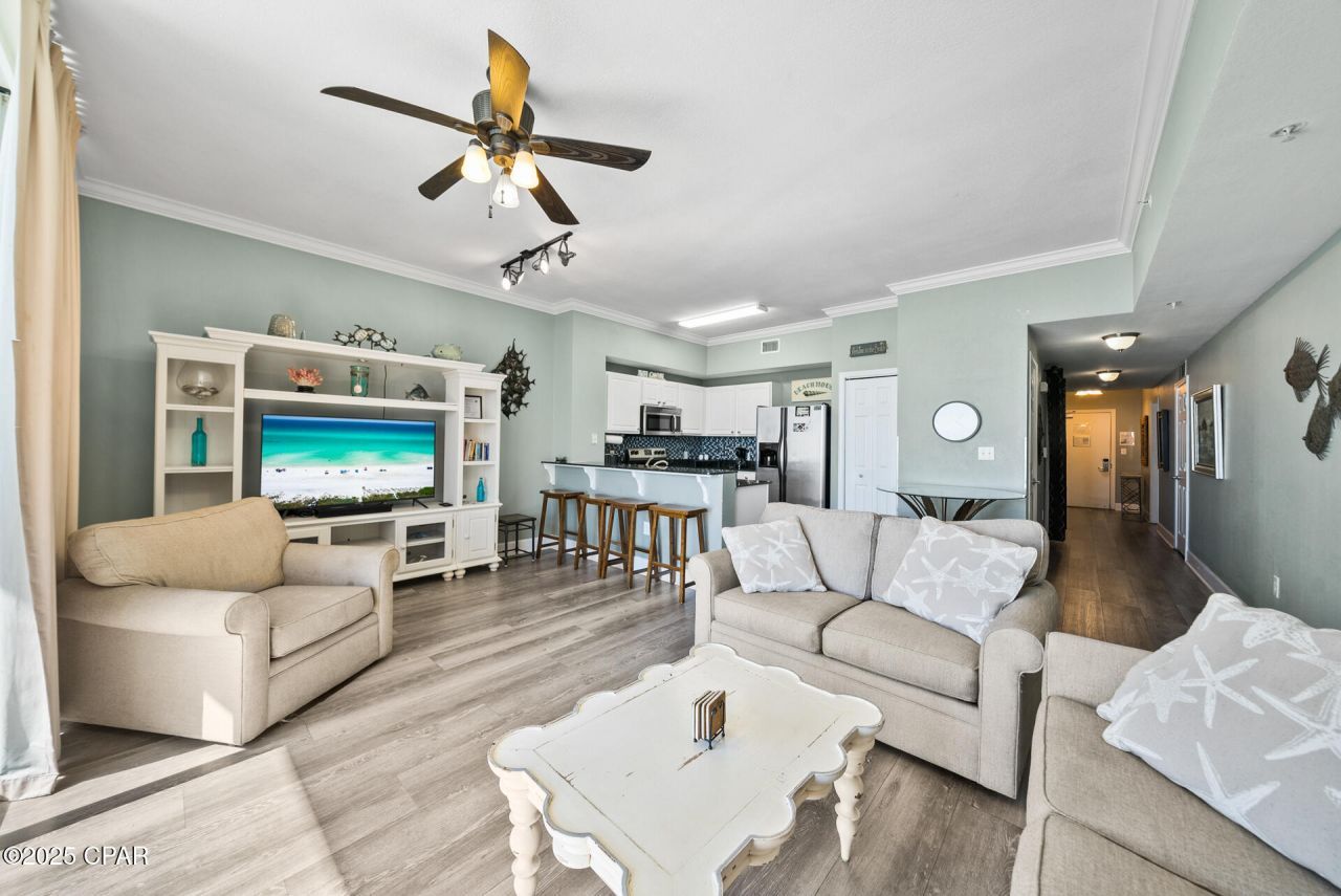 PENTHOUSE LEVEL! Higher ceilings. Welcome to your slice of paradise at Tidewater Beach Resort! This beautifully updated 2-bedroom, 3-bathroom Gulf-front condo also features a bonus bunk area, making it the perfect retreat for families, vacationers, or savvy investors. Step inside and enjoy the comfort of luxury vinyl plank flooring, granite countertops, and stainless steel appliances. The open layout is filled with natural light and offers breathtaking views of the Gulf of Mexico right from your living room or private balcony. Imagine relaxing to the sound of the waves and catching unforgettable sunsets each evening. This condo is being sold fully furnished and rental-ready, making it an ideal investment property or second home. The spacious layout comfortably accommodates guests, and the bunk area provides additional sleeping space for maximum rental potential. Tidewater Beach Resort amenities include: Two lagoon-style gulf front outdoor pools One indoor heated pool Multiple hot tubs Fitness center with Gulf views Sauna and steam room Movie theater On-site restaurant and bar Game room 24-hour security Covered parking Private beach access Located near Pier Park, dining, shopping, and local attractions, this is your chance to own a piece of the Emerald Coast in one of Panama City Beach's most desirable resorts. Don't miss this Gulf-front gem?schedule your showing today!